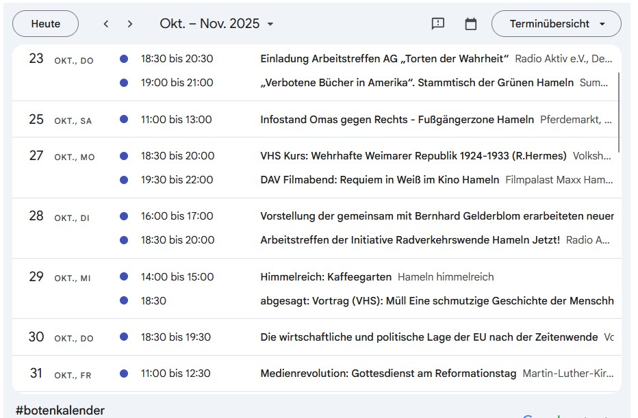 Zwei konkrete Vorschläge um etwas gegen Polarisierung, Desinformation und Extremismus in Hameln zu tun. Hier möchte ich besonders auf das Treffen am Donnerstag dieser Woche um 18.30 Uhr bei radio aktiv hinweisen. Aktuell wird viel geredet, was man denn tun könnte. Am Donnerstag sind Menschen eingeladen, die konkret etwas tun wollen: