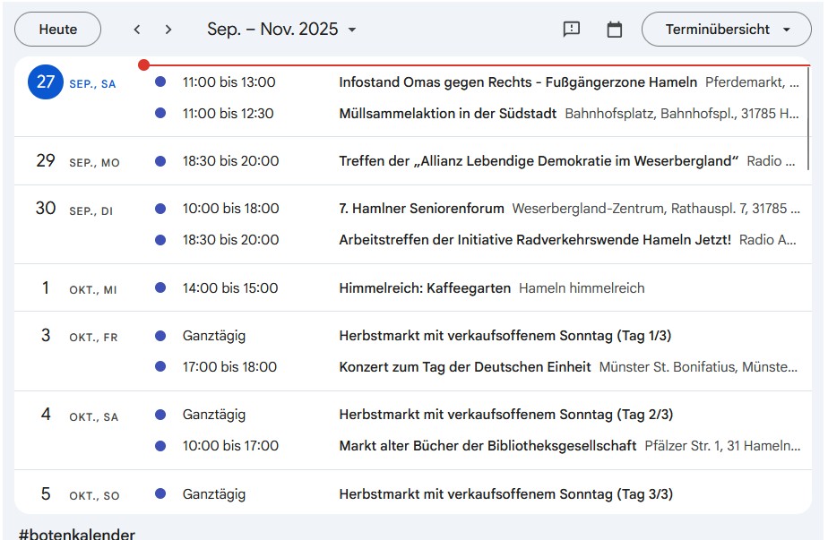 das wichtigste zuerst. Wie können wir die AfD im Landkreis und in der Stadt Hameln zurückdrägen - kleiner machen? Wie können wir ohne Hass und Hetze, Radikalität aber mit der Kraft des politischen Spektrums von CDU bis Linkspartei bei uns gegen Extremismus Präventionsarbeit leisten? Am Montag trifft sich erneut das überparteiliche Bündnis "Allianz für eine lebendige Demokratie im Weserbergland". Die Kommunalwahlergebnisse in NRW zeigen, es wird Zeit, dass sich alle engagieren. Wie? Dazu gibt es am Montag konkrete Vorschläge.